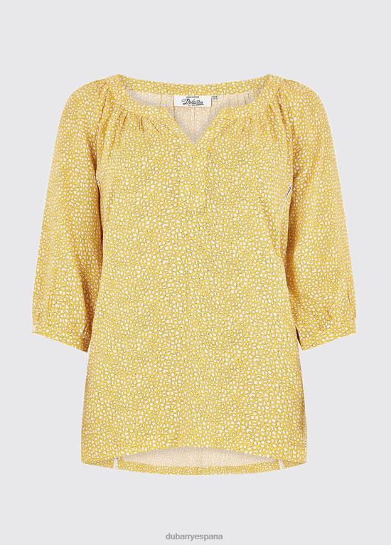 El Dahlia es un top suave y ligero con un estampado Dubarry hecho a medida. un corte relajado, escote redondo y mangas hasta los codos hacen que sea favorecedor y fresco en climas cálidos. combínalo con tus jeans favoritos para un look femenino del día a día o con unos shorts dubarry belinter para un estilo marino único.
