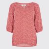 - top estampado con delicadas inserciones caladas