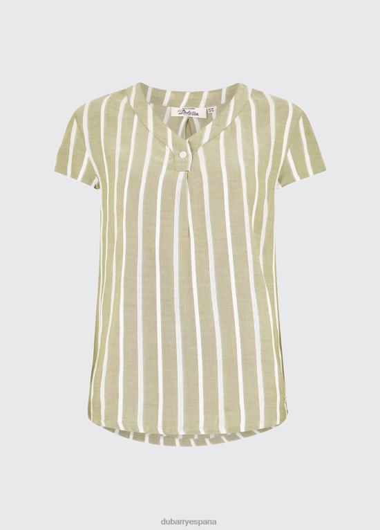 Camisa ligeramente transparente con rayas verticales, que recuerda a la ropa marina y de tripulación sin importar dónde fluya el verano. Las mangas cortas con un detalle de botón de perla dubarry en el cuello le dan a este top ligero de verano la delicadeza tanto para la vida cómoda en la ciudad como para los tranquilos paseos de verano por la orilla del mar.