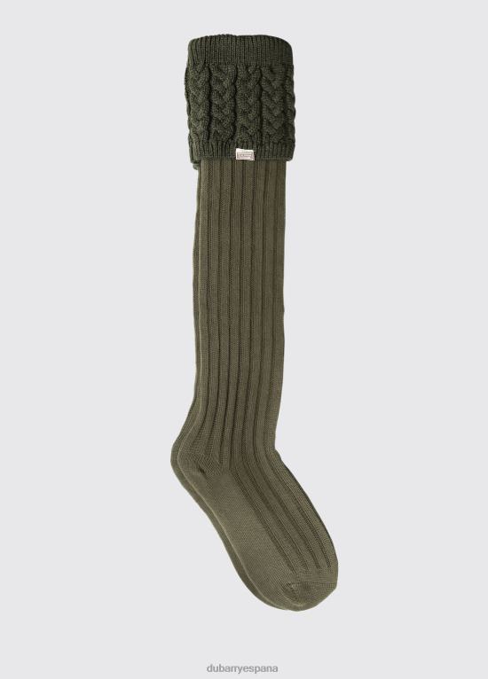 Cómo rematar una bota campestre de cuero Dubarry con un par de calcetines de algodón tejidos Dubarry hasta la rodilla. una llamativa parte superior plegable de punto trenzado se combina con un cuerpo de algodón y elastano, lo que te brinda un gran destello de color en la parte superior sin que tus calcetines se deslicen hacia abajo.