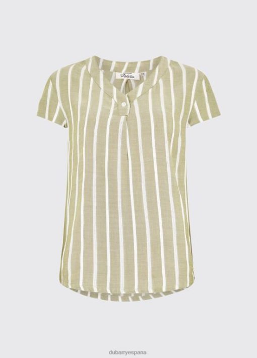 Camisa ligeramente transparente con rayas verticales, que recuerda a la ropa marina y de tripulación sin importar dónde fluya el verano. Las mangas cortas con un detalle de botón de perla dubarry en el cuello le dan a este top ligero de verano la delicadeza tanto para la vida cómoda en la ciudad como para los tranquilos paseos de verano por la orilla del mar.