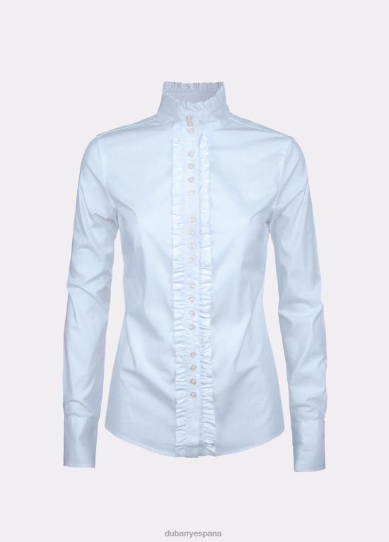 una camisa de inspiración tradicional, la manzanilla tiene un estilo elegante. El detalle de volante a lo largo del cierre de botones recorre toda la longitud hasta y alrededor del borde del cuello alto. combínalo con dubarry tweed para un estilo campestre atemporal o combínalo con jeans ajustados, botines chelsea y una chaqueta de cuero para darle un toque moderno.
