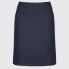 Falda de lino estilizada, que cae justo por encima de la rodilla, con abertura central en la espalda y cremallera oculta en el centro de la espalda con 2 bolsillos ribeteados delanteros.